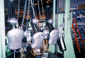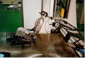 TMSI's automobile seat test system allows a seat manufacturer to perform different tests with only 10 minutes changeover time between them. Three hydraulic actuators are mounted on a crosshead that is rotatable and elevator driven up and down to position them for the different tests. This design is a huge benefit to seat manufacturers, who would otherwise have to purchase a separate machine for each test. TMSI's system performs the following tests. One is a Federal Motor Vehicle Safety Standard (FMVSS) 202 strength test, which pushes the seat back backward until it breaks. In this test, the seat is bolted to the floor of the test bed. A fixture attached to the back of the seat pushes it backward with the equivalent of 20 Gs of force. A load cell is attached to the actuator to indicate how many pounds of force are applied, and at what level of force the seat breaks. The system performs another FMVSS 202 strength test on the headrest. In this test, the headrest is also pushed backward until it breaks, but prior to that the seat back is pushed backward by an actuator with the shape of the human torso. This is to position the seatback, as it would be in a crash so that the orientation of the headrest on the seat back is as realistic as possible for this test. After the seat is pushed back by the actuator, the system stores the angle of the seat back. The seat back is then removed, the headrest is put into the correct orientation, and then pushed back with another actuator until it breaks. The force is recorded, as in the previous test. Onboard Intelligence Key to Real Time under WindowsThe use of a DAP enabled Test Measurement Systems Inc. (TMSI) to design a multi-function automobile seat testing system that costs about one-half of a similar system using a programmable logic controller (PLC). TMSI believes this system provides the most seat tests in a system controlled by a single PC: strength tests for the seat back and headrest, fatigue and load deflection tests, and a crash test of the headrest. “The DAP let us build a great deal of functionality into this system at a very competitive price.” The third test is a fatigue test in which one of the actuators is attached to the top of the seat frame. The frame is installed in the fixture in the locked position, and then the seat back is pushed backward and pulled forward for hundreds of thousands of cycles. As the seat weakens its deflection increases. The test is automatically stopped when the deflection reaches a predefined level. This test is not an FMVSS standard, but one that the manufacturers do as part of new seat design to ensure that the seat will last for the life of the car. The fourth test is load-deflection. In this test, which is designed to measure seat comfort, the actuators are rotated so they travel vertically. A human form is attached to the end of the actuator to simulate a person sitting in the seat. The actuators slowly press downward onto the seat until they reach a predetermined weight (200 to 300 pounds) then they reverse direction and slowly unload. The system captures the load and deflection data to determine how much energy the seat is absorbing. Seat manufacturers have determined optimal energy absorption properties for different vehicles. The fifth test is FMVSS 201, which involves an additional set of actuators mounted on a crosshead and a pneumatic blowgun that fires what are called "head cannons." These accelerate to 15 mph in the space of six inches and hit the headrest hard to simulate the effect of a human head slamming backwards in a crash. An accelerometer measures the g force of the head actuator at impact. The force needs to be below a certain level to meet the FMVSS standard. System designIn designing this test system, the traditional approach for controlling the actuators would have been to use a PLC, a digital controller used for applications such as on/off control, timing, logic, counting and sequencing, in between the user interface and the machine. PLCs are frequently used to control complicated machinery because they possess the stability and deterministic real-time capabilities needed to ensure that machines remain under control and follow prescribed shutdown procedures in case of a fault. If the TMSI engineers had gone with a PLC, they would also have needed a high-speed data acquisition system to collect the incoming test data. In addition, they would have needed an additional piece of hardware -- a PC and custom software linking all the components and serving as the user interface. Such a complex set of controls typically results in a system that is dedicated to a single test machine, thus driving the hardware costs up on a per-test basis. The development time required to to write the custom integration software would also raise the price of the system significantly.