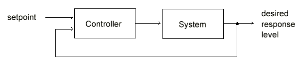 Very often, real processes cannot be operated in this way. The output may drift away from the setpoint for a variety of reasons, or may respond too slowly to changes, or may oscillate too much in response to transient changes. In these situations, the output of the system can be measured and processed by a separate controller (sometimes called a regulator). The controller compares the system output to the setpoint level to determine a new control input for the system. This configuration, called closed loop control, is illustrated in Figure 2.