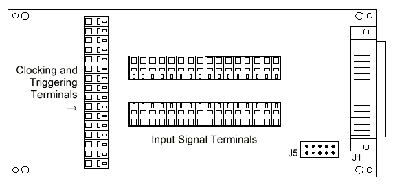Clocking and triggering signals can be connected to the Analog Input Expansion Board. See the Data Acquisition Processor manual for more information about hardware clocking and triggering.