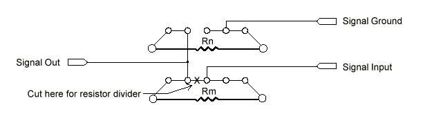 Before installing the voltage divider, a trace on the termination board must be cut. Above each even numbered resistor there is a row of five small holes. Between two of the holes there is a white "X." The trace must be cut at the "X."