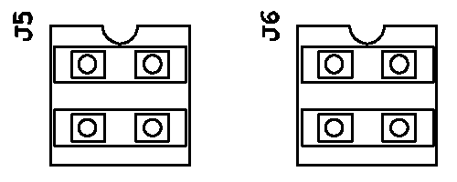 If the MSCBL072 is connected to an a-series Data Acquisition Processor, all five signals on J4 are available for use. If the MSCBL072 is connected to an e-series Data Acquisition Processor, however, only Note: On the MSCBL072 circuit board, PowerSince a-series Data Acquisition Processors have +/-18V supplies available on the 68-line connector, but e-series Data Acquisition Processors have +/-15V supplies on the 40-line connector, the MSCBL072 comes with voltage regulation circuitry installed on all models. These regulators can be used when connecting to an a-series Data Acquisition Processor so that the +/-18V supply lines on the 68-line connector are regulated to +/-15V on the 40-line connector. The voltage regulation circuitry can also be bypassed so that the +/-18V supply lines on the 68-line connector are directly connected to the +/-15V supply lines on the 40-line connector. This means that the 40-line connector will actually have +/-18V supplies, not +/-15V supplies, when the MSCBL072 is connected to an a-series Data Acquisition Processor. Alternately, the +/-18V lines will only be +/-15V when the adapter is connected to an e-series Data Acquisition Processor. Including or bypassing the voltage regulators is selected with shunts placed on J5 and J6. In order to bypass the voltage regulation circuitry, J5 and J6 should be configured as shown in Figure 2. This is the recommended configuration when the MSCBL072 is connected to an e-series Data Acquisition Processor.